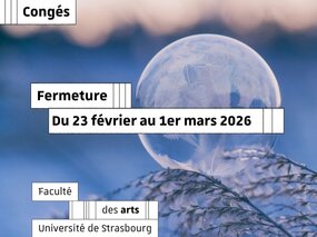 Les scolarités de la Faculté des arts seront fermées durant la semaine des vacances universitaires du lundi 23 février au dimanche 1er mars 2026.