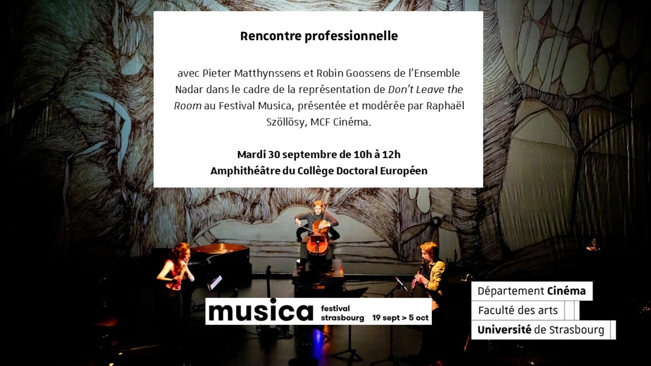 Rencontrez Pieter Matthynssens et Robin Goossens de l'Ensemble Nadar dans le cadre de la représentation Don't Leave the Room au Festival Musica.